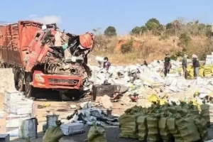 缅北腊戌-登尼公路发生翻车事故,致2死1伤